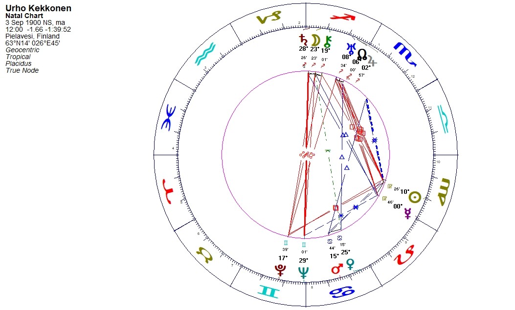 Ei ole ihme että Kekkonen koettiin kansan ihmiseksi. Suomen astrokartta on hyvin haastava ja vain harvojen oma syntymäkartta istuu siihen yhtä luontevasti kuin Kekkosen.